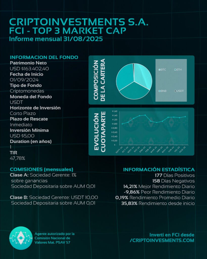 Criptoinvestments S.A. es un Proveedor de Servicios de Activos Virtuales (Mat.57) registrado ante la Comisión Nacional de Valores. Las inversiones en criptomonedas conllevan un alto riego de perdida de capital. Las inversiones en estos instrumentos solo están recomendadas para perfiles agresivos. La mayoría de las cuentas de criptomonedas pierden dinero. Criptoinvestments S.A., sus asesores, directores empleados y accionistas no se responsabiliza por los resultados obtenidos. La custodia de las criptomonedas ya activos virtuales corre por cuenta y orden del cliente. La empresa no re responsabiliza por posibles pérdidas económicas.